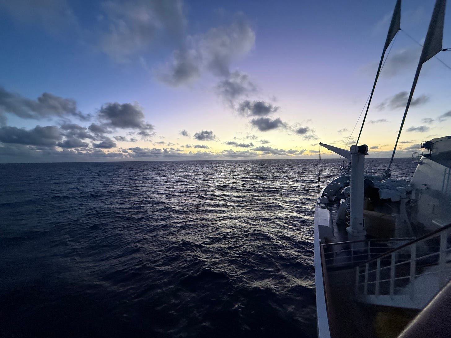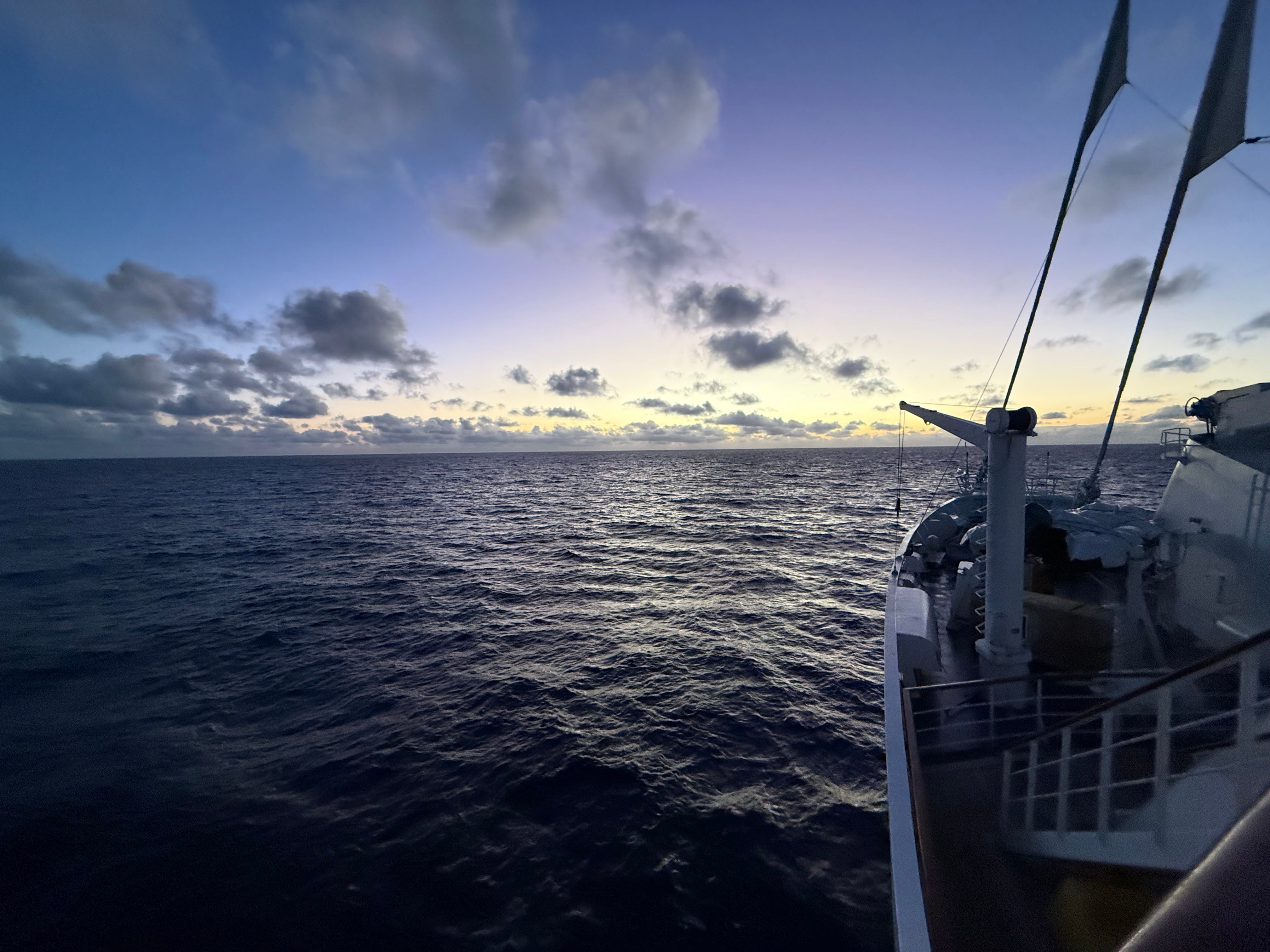 At sea